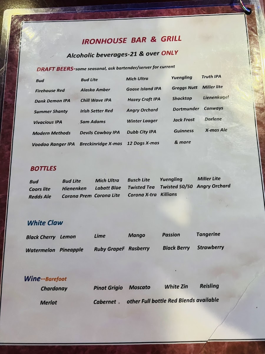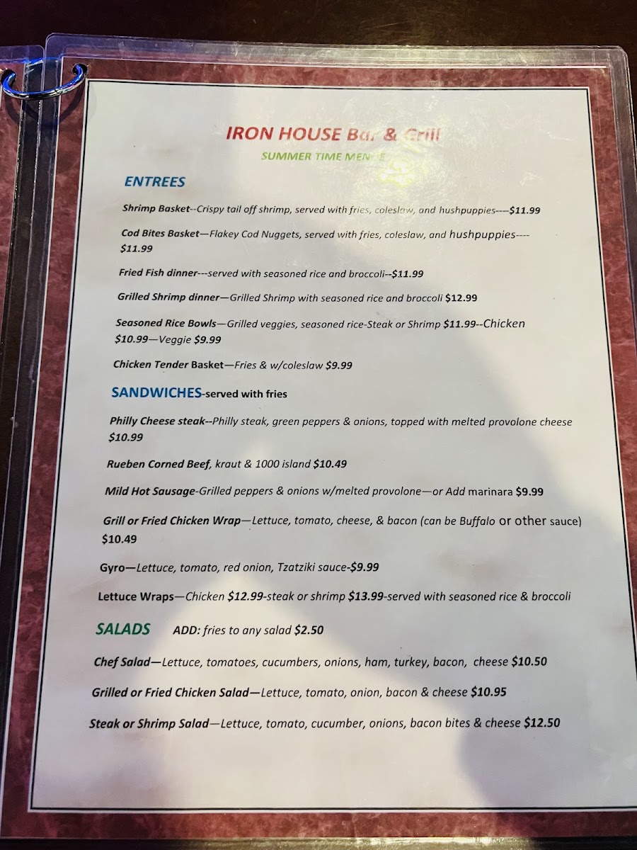 The inviting atmosphere, complemented by attentive service, ensures a delightful dining experience. Whether you're catching a game or enjoying a casual meal, Iron House has something to satisfy every craving.